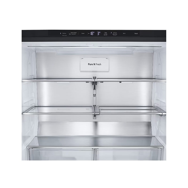 نمایشگر یخچال در داخل یخچال قرار گرفته شده است. این نمایشگر تحت تاثیر هوای سرد قرار نمی گیرد. این در حالی است که یخساز اتوماتیک واکنش بسیار حرفه ای را در راستای یخ های خرد شده و حبابی ایفا می کند. محفظه بسیار باریک در قسمت یخچال نیز این موضوع را تثبیت می کند. با چنین محصولی می توان از نسل جدید یخچال های ال جی بهره گرفت و لذت بی پایان زندگی مدرن را تجربه کرد.