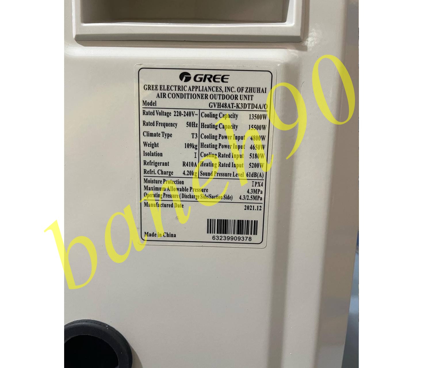 | گاز | R410A |