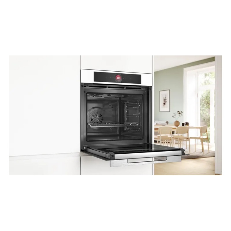 آشپزخانه خود را با فر توکار 71 لیتر بوش مدل HBG7741W1 کامل کنید. پخت و پز با این دستگاه هوشمند به هیچ وجه دشوار نیست. ولوم های چرخشی جای خود را به یک حلقه کنترل دیجیتال نوآورانه داده اند که به شما امکان می دهد فر را بدون زحمت تنظیم کنید. برنامه Hot Air Eco حالت اقتصادی تر از متداول ترین حالت گرمایشی است. وقتی در یک سطح پخت می کنید، نیازی به گرم کردن قبل نیست! و به لطف عملکرد دستی Assist، فر می داند که ظرف شما چه زمانی آماده است و دستگاه به طور خودکار خاموش می شود. اما این همه ماجرا نیست. با اتصال فر به برنامه HomeConnect، دنیایی از امکانات برای شما باز می شود.