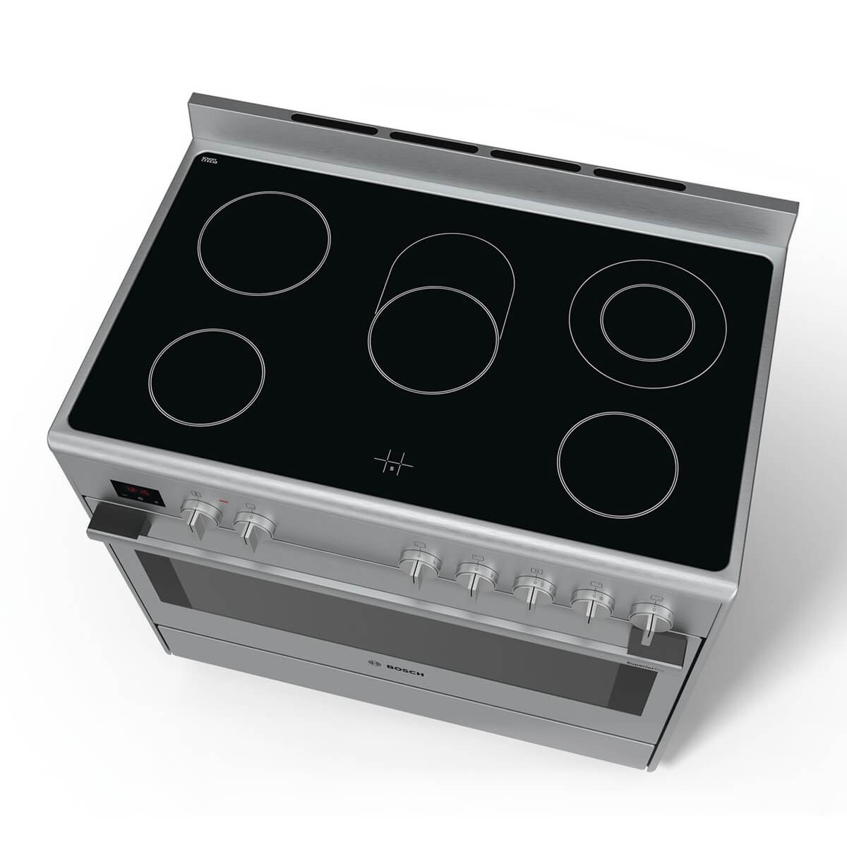 اجاق برقی BOSCH مدل HCB738257I از اجاق های ایستاده و القایی شرکت بوش و جزو سری 8 اجاق های مبله این شرکت میباشد. بدنه ی این اجاق گاز ازجنس استیل ضدزنگ و ضدلک تشکیل شده است. طراحی اجاق گاز بوش مدل HCB738257I به صورت 5 شعله بوده که شامل 1 محدوده دو مداره، 1 محدوده بیضی شکل قابل گسترش و 3 محدوده استاندارد میباشد. عرض 90 سانتی متری محدوده کارکرد وسیعی در اختیارتان قرار میدهد. صفحه این دستگاه از جنس شیشه مقاوم بوده و به آسانی تمیز میشود.
