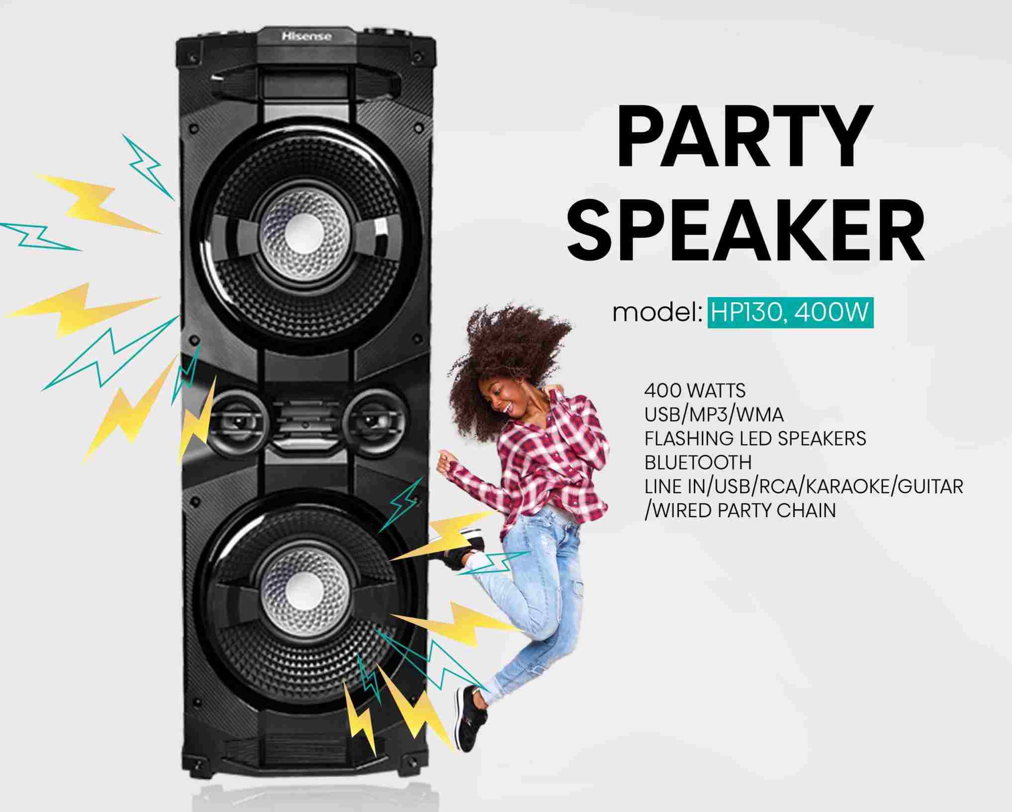 سیستم صوتی هایسنس HP130 یکی از زیباترین و در عین حال با کیفیت ترین سیستمهای صوتی موجود در بازار است که با توان 400 وات خود می تواند بزرگترین پارتی ها را مهیج کند.
