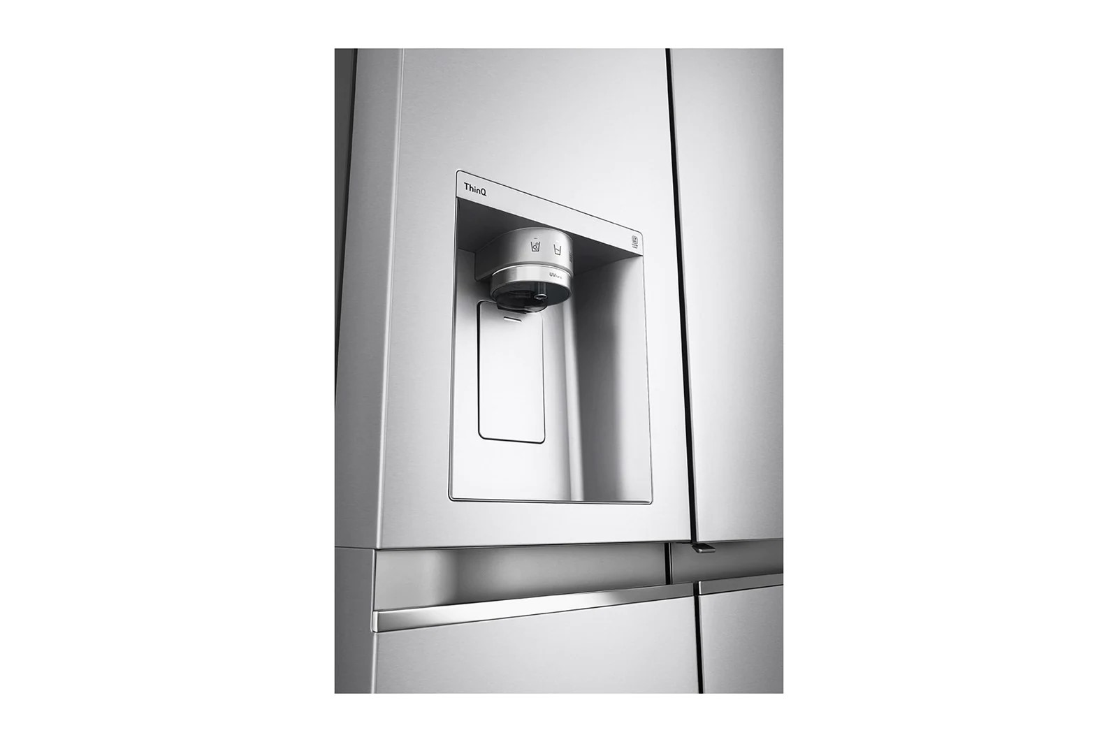 به زبان ساده تر این سیستم اجازه می دهد تا از حداکثر ظرفیت فضای داخلی فریزر برخوردار شوید و غذای بیشتری را نگه داری کنید و همچنین راحت تر به یخ دسترسی داشته باشید. آبریز این یخچال متعلق به فناوری UVnano می باشد. در واقع این فناوری سبب می شود تا آبی بسیار زلال و تمیز را بنوشید زیرا این فناوری تمامی باکتری و میکروب های داخل اب را از بین خواهد برد و اب را تصفیه می کند.