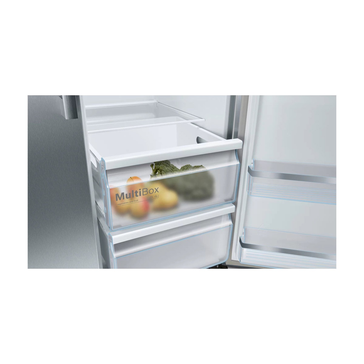 سیستم VitaFresh در یخچال فریزر ساید بای ساید بوش مدل KAG93AI304 به دلیل توانایی آن در کنترل شرایط و دما ، محیط ایده آلی را برای نگهداری تمام مواد غذایی تازه شما فراهم می کند. ماهی و گوشت در دمای حدودا 0 درجه سانتیگراد مدت بیشتری تازه می مانند. میوه ها و سبزیجات در یک محیط بهینه نگهداری می شوند. اکنون مقدار زیادی غذای تازه برای لذت بردن و کاهش ضایعات غذا خواهید داشت. عملکرد انجماد سریع دمای فریزر را پایین می آورد ، به طوری که تمام اقلام منجمد تازه خریداری شده شما به سرعت به دمای صحیح می رسند بدون اینکه تأثیری بر سایر مواد غذایی که قبلاً ذخیره شده اند داشته باشد.