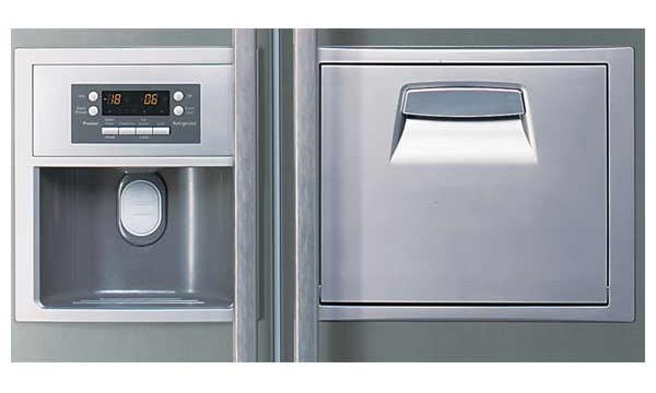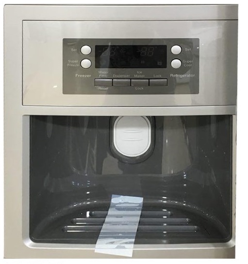 در این یخچال پنل تنظیمات روی درب فریزر قرار دارد و درست در بالای قسمت آبریز تعبیه شده است. این پنل یک نمایشگر واضح ال ای دی دارد که دکمههایی با عملکرد لمسی دور تا دور آن را احاطه کردهاند. به کمک نمایشگر میتوان از وضعیت درون یخچال و فریزر و دمای آن و … باخبر شد و همچنین با استفاده از دکمههای لمسی کاربر میتواند میزان دمای یخچال و فریزر را تنظیم نماید، توابع مختلف را فعال کند یا اینکه حالت خروج آب را به یخ تغییر دهد.