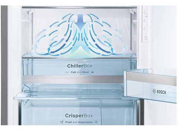 مورد دیگری که در این یخچال ساید بوش وجود دارد، در نظر گرفتن یک فن یکپارچه و قدرتمند است که به خنک شدن بیشتر درون یخچال با مصرف کمتر انرژی کمک میکند. با قدرت فریزر کردن سریع در این یخچال میتوانید مقدار 10 کیلوگرم از مواد غذایی را در مدت زمان تنها 24 ساعت به سرعت انجماد کنید. بوش از این قابلیت با نام انجماد فوق العاده سریع ( Superfreezing ) یاد میکند. همچنین زمانی که میخواهید در قسمت یخچال دما را به سرعت پایین بیاورید میتوانید از قابلیت ( SuperCooling ) استفاده کنید. پس هنگامی که میخواهید مواد غذایی مورد نظرتان سریعا خنک شوند و بدون نیاز به استفاده از یخ، نوشیدنیهای خنک در اختیار داشته باشید، این قابلیت برایتان کمک کننده خواهد بود