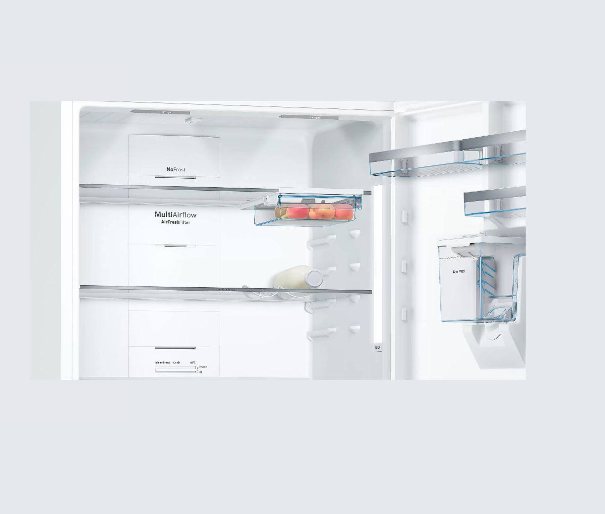 یخ زدایی یخچال و فریزر می تواند هم آزاردهنده و هم وقت گیر باشد. با تشکر از یخچال و فریزرهای جدید بوش با NoFrost، می توانید این کار را از لیست کارهای خود حذف کنید. برخلاف یخچال های معمولی، رطوبت موجود در یخچال فریزر NoFrost در یک واحد تبرید مرکزی جمع می شود که بطور خودکار یخ زدایی می کند. آب چگالشی حاصل از این فرآیند از یخچال و فریزر جایی که در آن تبخیر می شود تخلیه می شود. به این ترتیب، NoFrost، یخچال و فریزر را از یخ زدگی و یخ نگه می دارد و در نتیجه یخ زدایی دستی از بین می رود.