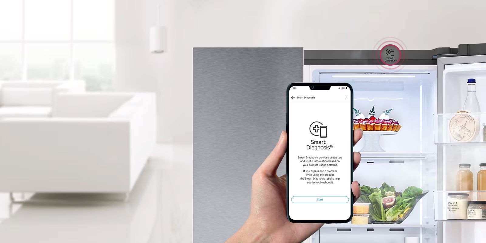 سیستم عیب یابی به صورت هوشمندانه از شاهکارهای ال جی بوده که با اتصال به وای فای WiFi امکان پذیر می باشد و حتماً از این اتصال مطمئن شوید تا ارتباط برقرار شود.