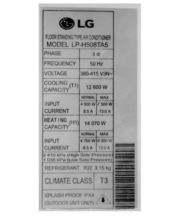 برخی ویژگی های دیگر کولرگازی 50000 ایستاده ال جی
