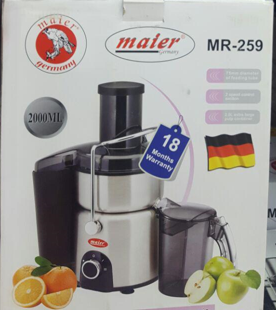 آبمیوه گیری مایر مدل MR-260 محصول شرکت آلمانی و مشهور و پرآوازه مایر یا Maier بوده و ساخت کشور آلمان میباشد. موتور قدرتمند این دستگاه از توان 800 وات برخوردار است که توان بالای دستگاه را به هنگام استفاده از آن تجربه خواهید نمود. با استفاده کارآمد این مدل دستگاه آبمیوه گیری شما می توانید نوشیدنی های خوشمزه را در مدت زمانی کم آماده و نوش جان کنید. فیلتر این دستگاه آبمیوه گیری از جنس استیل ضد زنگ می باشد که بهداشت و سلامتی را برای شما و خانواده به ارمغان می آورد.