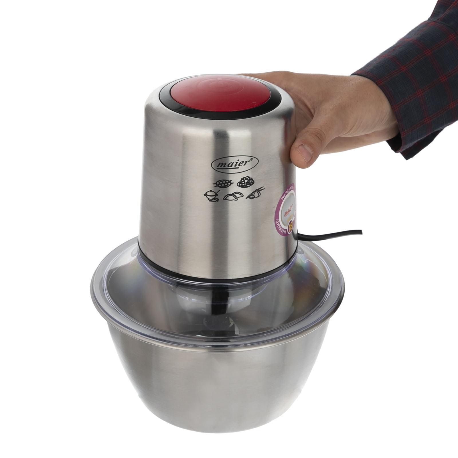 خرد کن مایر مدل MR-383 دارای موتور بسیار قوی با توان مصرفی 400 وات و جنس تیغه خردکن از استیل ضدزنگ ساخته شده است. کاسه خردکن ظرفیت 1.5 لیتری دارد. تیغه ها دارای قابلیت جداشدن از بدنه هستند. این محصول دارای سوییچ ایمنی بوده و تنها با فشار یک کلید می توانید هرنوع ماده غذایی را براحتی خرد و رنده نمایید.