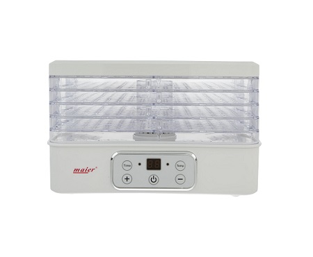 میوه خشک کن مدل MR-6969 یکی از محصولات شرکت مایر می باشد که به راحتی خوراکی های خوشمزه ای مانند: چیپس سیب، موز، پرتقال و… را خشک می کند. با استفاده از میوه خشک کن چرخشی مایر مدل MR-6969 و با توان موتور قدرتمند 250 واتی می توانید بهترین نتیجه را در کمترین زمان و انرژی مصرفی به دست بیاورید. این میوه خشک کن چرخشی مایر، دارای 5 طبقه یا سینی برای چیدن میوه ها و مواد غذایی است. پس از چیدن میوه ها دکمه استارت را فشار دهید تا میوه خشک کن با تایم پیش فرض شروع به کار کردن کند.
