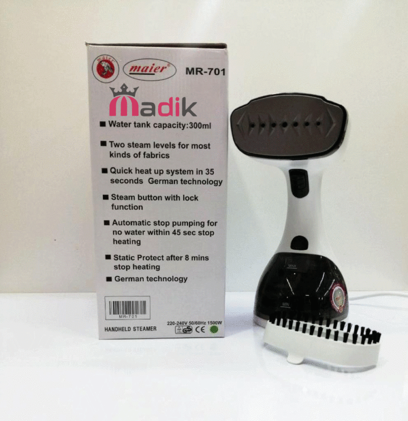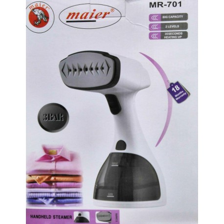 اتو بخار دستی مدل 701 یکی از محصولات برند مایر است. برند مایر یک برند معروف آلمانی می باشد و سابقه درخشانی در تولید لوازم خانگی دارد. اتو mr-701 دارای موتور قدرتمند با توان 1500 وات است و از سیستم بخاردهی پیوسته بهره میبرد که تا میزان 45 گرم بر دقیقه بخار تولید میکند. مخزن آب این دستگاه در قسمت دستهی آن تعبیه شده است. این مخزن 300 میلیلیتر آب را در خود جا میدهد و در هر زمان، حتی در حین کار دستگاه، قابل پرکردن است.