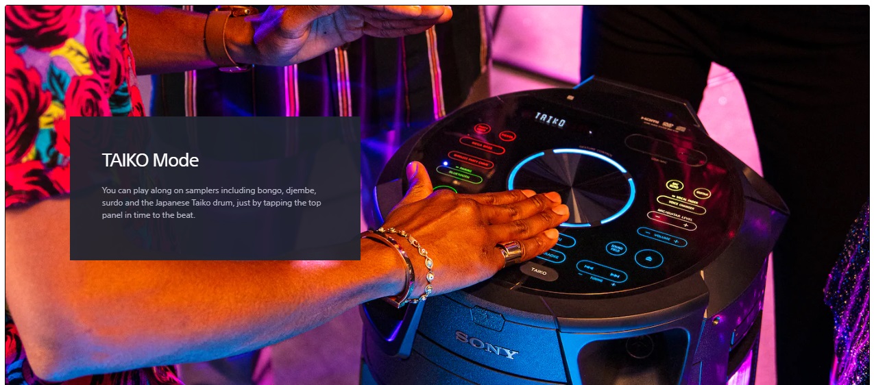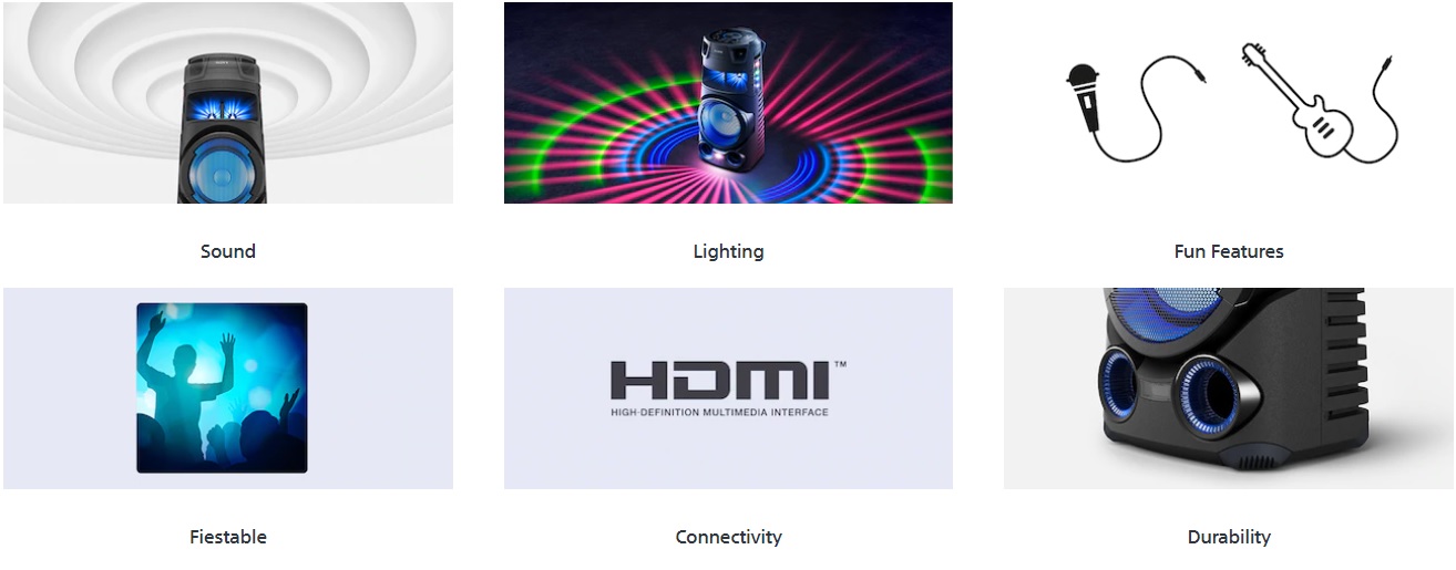 ویژگی قابل توجه دیگری نیز مانند نورپردازی نیز در ساخت این سیستم صوتی به چشم میخورد. این نور به چند رنگ متنوع منتشر شده و با ضرب موسیقی اوج میگیرد و شنیدن موسیقی را برایتان جذابتر خواهد کرد. با استفاده از قابلیت نورپردازی در این سیستم صوتی، قادر خواهید بود تا شما مهمانی پر شور و نشاطی داشته باشید. نورهای موجود در شیک V73D سونی با ریتم آهنگ هماهنگ می شود به طوریکه هنگام پخش آهنگ های شاد نورها درخشان تر و با ریتم تندتری نمایش داده می شود. پخش آهنگ و رقص نور در مهمانی فضایی بسیار شاد و هیجانی را برای شما ایجاد می کند تا لحظات شادی را در جمع دوستانتان سپری کنید. یکی از ویژگی های کاربردی سیستم صوتی رقص نور دار سونی مدل MHC-V73D چرخ های موجود در آن است که حمل آن را آسان می کند و می توانید آن را همانند چمدان دنبال خود بکشانید و جابجا کنید. طراحی عالی که در این مدل مورد استفاده قرار گرفته است باعث می شود حداکثر کارایی را از اسپیکرها و سابووفر در اختیار داشته باشید. با استفاده از ارائهی صدای حیرت آور و در کنار آن نور پردازی عالی شما می توانید از اوج کارایی این مدل استفاده نمایید.