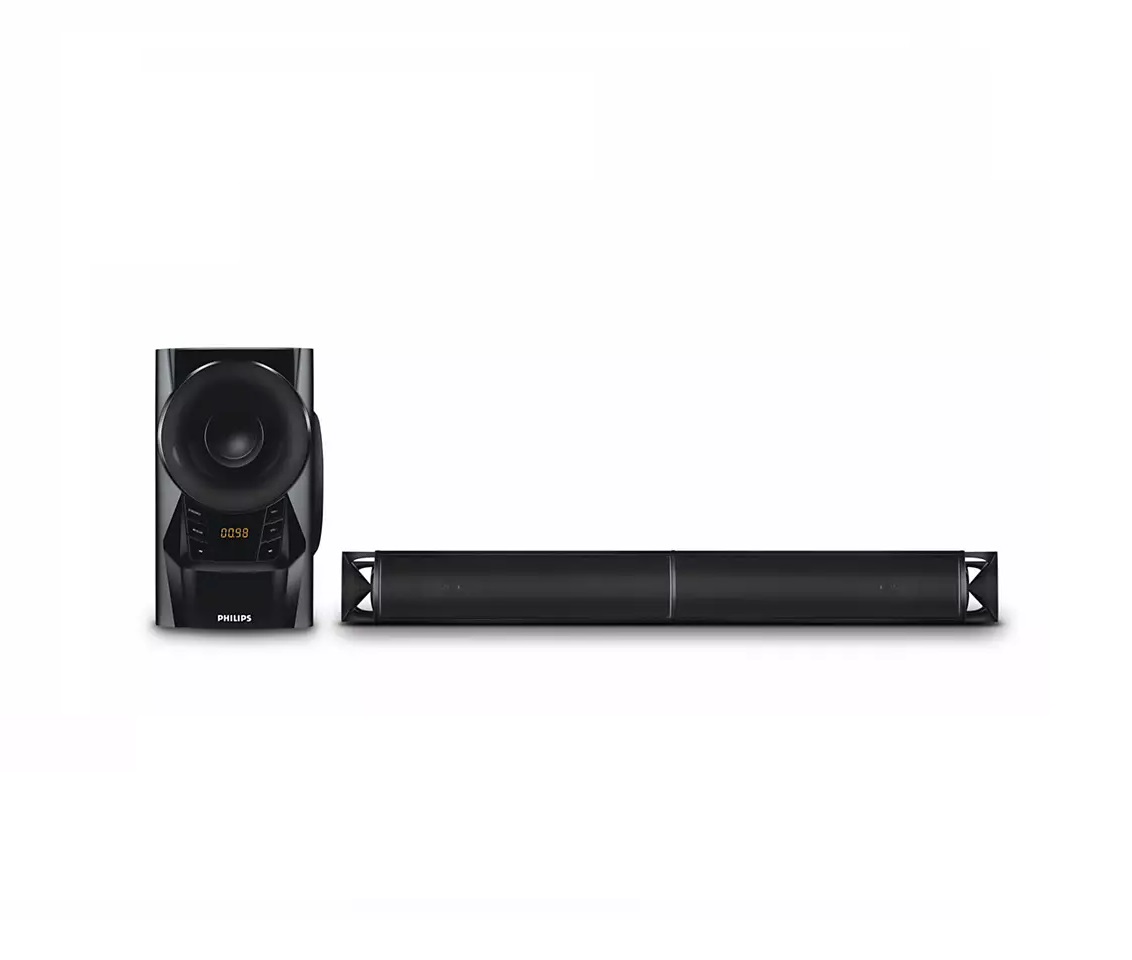 حافظه جانبی یو اس بی نیز یکی از پر کاربرد ترین دستگاه برای ذخیره فایل های صوتی مختلف است.یو اس بی به دلیل حجم کم و میزان فضای قابل ذخیره در ان بسیار مورد توجه است.ساندبار 2.1 کانال فیلیپس MMS2160 دارای پورت ورودی USB است و به راحتی شما می توانید تمام اهنگ های ذخیره شده بر روی انرا با این سیستم صوتی فیلیپس پخش کنید و از شنیدن انها لذت ببرید.