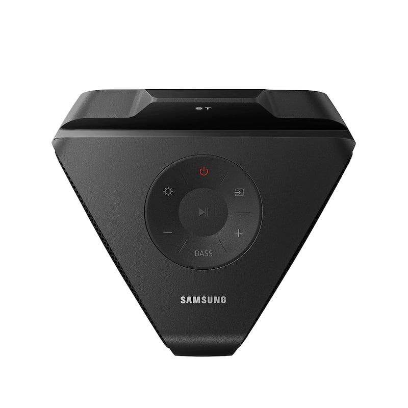 MX-T40 یک اسپیکر بلوتوثی در ظاهر بسیار شیک و امکانات عالی است و یکی از بهترین گزینهها برای خرید و استفاده مداوم محسوب میشود. این اسپیکر بلوتوثی که با نام ساندتاور(Sound Tower) نیز شناخته شده از توان صدای 300 وات برای پخش صدایی بلند و رسا استفاده میکند. با این توان صوتی، صدایی در وضوح بسیار بالا پخش شده و توانایی پخش صدایی بدون نویز و باکیفیت را خواهد داشت. اسپیکر بلوتوثی MX-T40 همانطور که از نامش پیداست یک اتصال قوی را میان اسپیکر با انواع دستگاههای هوشمند از طریق بلوتوث ایجاد میکند. این اسپیکر همچنین از برخی راههای ارتباطی دیگر همچون USB برای برقراری ارتباط با سایر دستگاهها پشتیبانی میکند. قابلیت ایجاد یک اتصال قوی میان این اسپیکر با سایر سیستمهای صوتی وجود دارد تا بتوانید یک سیستم قدرتمند با میزان صدای بالا را ایجاد کنید. این قابلیت که به Group Play نیز معروف است یکی از کاربردیترین امکانات موجود در اسپیکر بلوتوثی سامسونگ مدل MX-T40 میباشد.