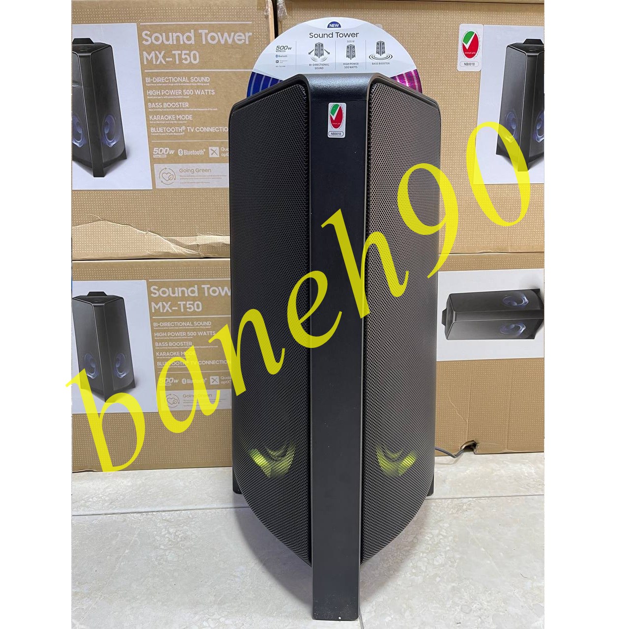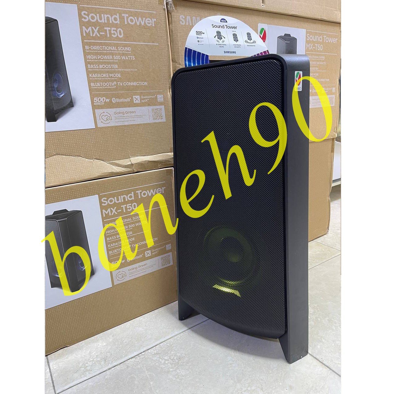 MX-T50 یک اسپیکر بلوتوثی در ظاهر بسیار شیک و امکانات عالی است و یکی از بهترین گزینهها برای خرید و استفاده مداوم محسوب میشود. این اسپیکر بلوتوثی که با نام ساندتاور(Sound Tower) نیز شناخته شده از توان صدای 500 وات برای پخش صدایی بلند و رسا استفاده میکند. با این توان صوتی، صدایی در وضوح بسیار بالا پخش شده و توانایی پخش صدایی بدون نویز و باکیفیت را خواهد داشت. اسپیکر بلوتوثی MX-T50 همانطور که از نامش پیداست یک اتصال قوی را میان اسپیکر با انواع دستگاههای هوشمند از طریق بلوتوث ایجاد میکند. این اسپیکر همچنین از برخی راههای ارتباطی دیگر همچون USB برای برقراری ارتباط با سایر دستگاهها پشتیبانی میکند. قابلیت ایجاد یک اتصال قوی میان این اسپیکر با سایر سیستمهای صوتی وجود دارد تا بتوانید یک سیستم قدرتمند با میزان صدای بالا را ایجاد کنید. این قابلیت که به Group Play نیز معروف است یکی از کاربردیترین امکانات موجود در اسپیکر بلوتوثی سامسونگ مدل MX-T50 میباشد.