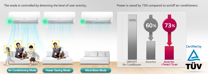 در کولر گازی ال جی به صورت خودکار و با استفاده از سنسورهایی که در این دستگاه تعبیه شده است، تشخیص اینکه افراد در چه نقطه ای از منزل نشسته و یا چه هنگام باد شدیدتری را نیاز دارند داده می شود. به این ترتیب این کولر گازی نهایت راحتی و آسایش را برای افراد خانواده به ارمغان آورده و لحظات بسیار دلنشینی را رقم خواهد زد. همچنین این کولر گازی می تواند تشخیص دهد که باد تولید شده برای افراد خانواده اذیت کننده است یا خیر و با تشخیص کولر جهت باد تغییر خواهد کرد.