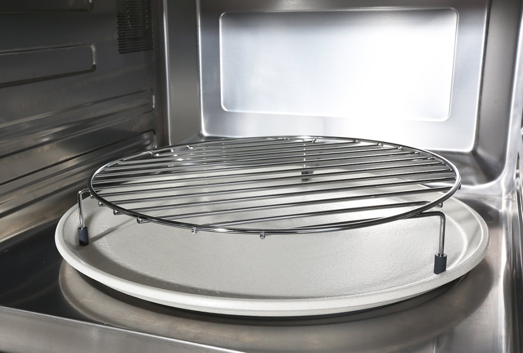 تنظیمات این مایکروویو از طریق دکمههای مکانیکی سمت راست بدنه انجام میشود. دو دکمهی ولومی بزرگ برای تعیین دمای کارکرد و تنظیم زمان پخت هستند و از طریق پیچ بالایی میتوانید به منوی برنامههای پخت مایکروویو دسترسی پیدا کنید. اگر به موارد حک شده روی درِ شیشهای محصول دقت کنید، متوجه علائمی میشوید که شما را در انتخاب برنامهی مناسب از منو راهنمایی میکنند. مایکروویو مدل NN-CD997S درمجموع دارای 20 برنامهی پخت است که شامل مواردی همچون پخت سبزیجات، ماهی، گوشت، مرغ، سوپ، پیتزا و نان میشود. وجود 20 برنامهی پخت در منوی مایکروویو دست شما را در پخت آسان و بیدردسر انواع غذا و دسر باز گذاشته است.