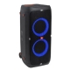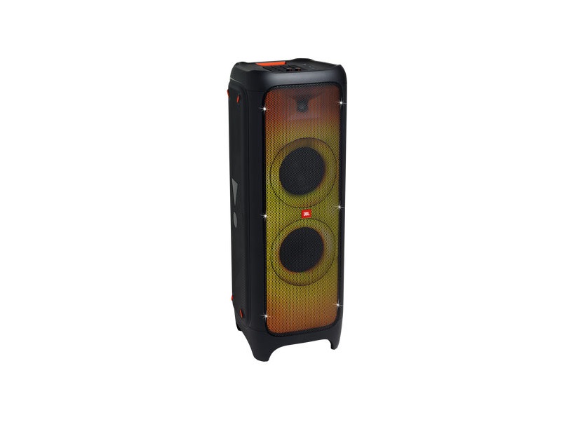 اسپیکر جی بی ال PARTY BOX 1000 یکی از بهترین اسپیکرهای موجود در دنیا با قدرت صوتی بی نظیر 1100 وات می باشد و با مارک ها و شرکت های دیگر قابل مقایسه نیست، زیرا جی بی ال تمامی قدرت خود را فقط در ساخت اسپیکر گذاشته است. طراحی مدرن و زیبای این اسپیکر هر فضایی را دلنشین تر می کند. اندازه ی آن معادل 34.7 کیلوگرم است که وزن نسبتا سنگینی دارد ولی با استفاده از چرخ هایی که برای آن قرار داده شده به راحتی می تواند قابل حمل باشد. دستبند Air Gesture هماهنگ با اسپیکر، از راه دور قابل کنترل می باشد. این دستبند خیلی راحت تر از کنترل ریموت می باشد. برخورداری از سیستم نور پردازی جمع ها و مهمانی های شما را جذاب تر و نورانی تر می سازد و با توجه به آهنگ قابل تنظیم بوده و به راحتی می توانید آن را نسبت به ریتم آهنگ خود تغییر دهید. وجود درگاه های ارتباطی زیاد مانند USB ،AUX و بلوتوث می تواند به راحتی ارتباط سریع و کار آمدی را ایجاد کند و در صورت تمایل به صدای خیلی بلندتر کاربران می توانند چند دستگاه اسپیکر را به Party box 1000 متصل کنند و از صدای خیلی بلندتری بهرمند شوندو نهایت لذت را ببرند. این اتصالات از طریق متصل شدن سیم (RCA) و یا بدون سیم (بلوتوث)صورت می گیرد. جی بی ال این محصول زیبا را مجهز به سیستم خاموش کننده خودکار کرده و در صورتی که به اسپیکر نیاز نداشته باشیم برای صرفه جویی در مصرف برق خاموش می شود. با خرید اسپیکرJBL 1000 می توانید تجربه ی شیرین خوانندگی را با قابلیت کارائوکه تجربه کنید و از آن لذت ببرید.