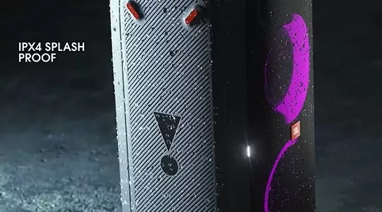 اسپیکر PartyBox 310 یک سیستم صوتی قابل حمل می باشد که در هنگام گردش ها و سفر ها همراه ما خواهد بود و میتواند در معرض خطرات مختلفی قرار بگیرد. بدنه ی این اسپیکر با دارا بودن گواهینامه بین المللی IPX4 ضد آب بوده و در برابر نفوذ آب و گرد و خاک مقاوم می باشد. این ویژگی به شما کمک می کند تا این سیستم صوتی همراه را با خود به هر مکانی حمل کرده و نگران آسیب های احتمالی نباشید. یک جمع دوستانه در کنار ساحل ، یک میهمانی در کنار استخر و یا هنگامی که باران شما را غافلگیر می کند ، موسیقی ادامه خواهد داشت.