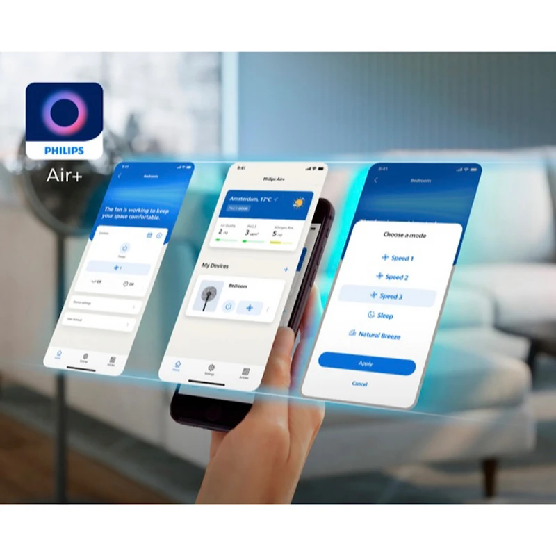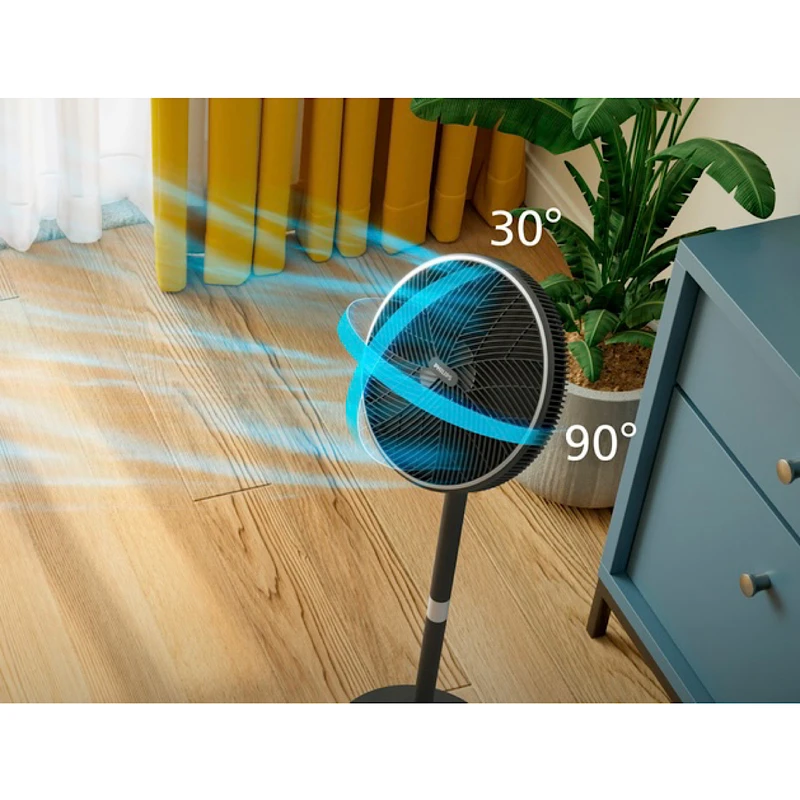 با داشتن پنکه فیلیپس CX3550 با هوای راکد خداحافظی کنید و از نسیمی طراوت بخش که به هر گوشه از فضا می رسد، استقبال نمایید. از حداکثر راحتی لذت ببرید و فارغ از اینکه کجا هستید، احساس طراوت کنید. این پنکه می تواند 30 درجه کج شود و به طور خودکار 90 درجه بچرخد و جریان هوای یکنواختی را در کل اتاق ایجاد نماید. پنکه ریموت دار PHILIPS CX3550 در 2 ارتفاع مختلف متناسب با محیط اطراف قابل تنظیم می باشد. تنظیمات با برنامه Air+ به راحتی قابل انجام است.