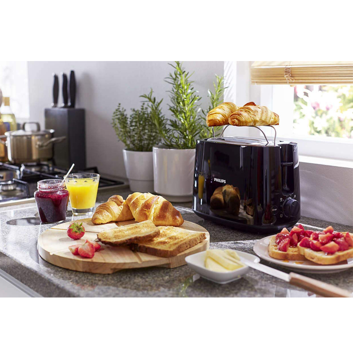 با استفاده از توستر نان فیلیپس مدلHD۲۵۸۱ میتوانید انواع کلوچه و شیرینی های دیگر را نیز گرم کرد. برای این عمل کافیست که دسته پشت نان توست را به پایین کشید تا میله فلزی روی سطح دستگاه قرار گیرد. حال میتوانید شیرینی و دیگر نان های خود را روی میله قرار داد و دستگاه را روشن نمایید.همچنین از ویژگی های مهم این توستر امکان یخ زدایی ، گرم کردن مجدد و همچنین تست کردن نان یخ زده تنها با یک بار تنظیم دستگاه می توان اشاره کرد.