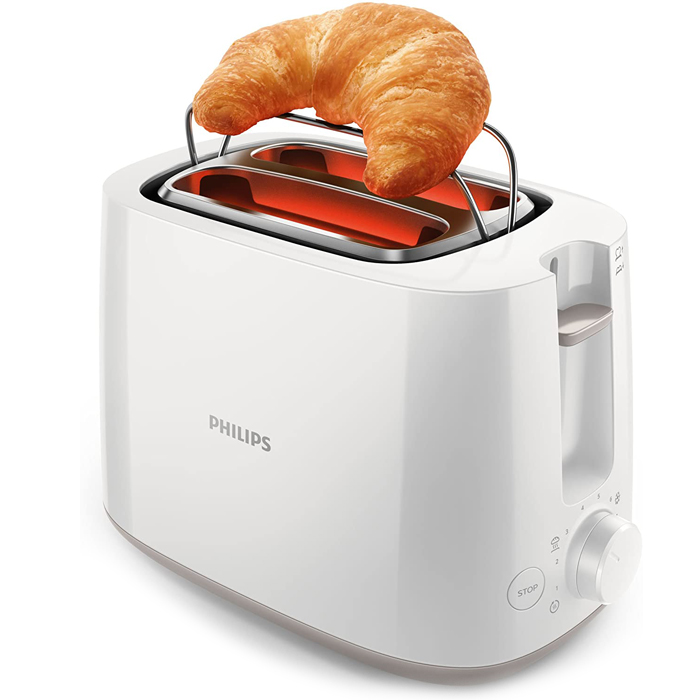 توستر نان فیلیپس مدل HD2581 با توان مصرفی 830 وات، از دستگاه های با کیفیت و کاربردی فیلیپس است که ساختار زیبایی دارد و فضای کمی را در آشپزخانه ها اشغال می کند. بدنه این توستر فیلیپس از جنس پلاستیک ساخته شده و از 2 اسلات بهره می برد. پیچ تنظیم و دکمه کنترلی در یک سمت دستگاه قرار گرفته اند که از طریق آن ها می توان میزان برشتگی را تنظیم کرد و در صورت لزوم، با فشردن دکمه Stop، عملیات برشته کردن و یا گرم کردن نان را متوقف کرد.
