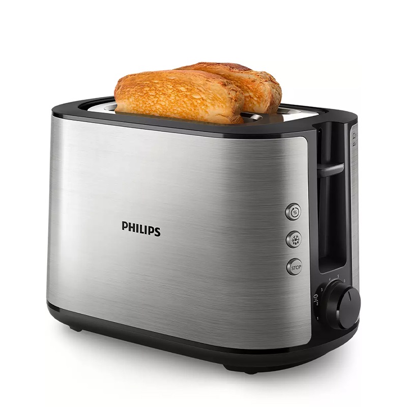 در توستر فیلیپس مدل HD2650 دو درگاه برای قرار گیری نان تعبیه شده است. همچنین در زیر این توستر نان فیلیپس سینی جمع آوری خرده نان قرار گرفته است که پس از تست کردن نان میتوانید خرده نانها را جمع آوری کنید. این توستر ظاهر بسیار زیبایی دارد و بدنه از استیل ساخته شده است. همچنین برای گرم کردن نان های گرد و کلوچه دو عدد پایه تعبیه شده است تا به راحتی بتوان روی دستگاه سوار کرده و انواع نان را با استفاده از آن گرم کرد.