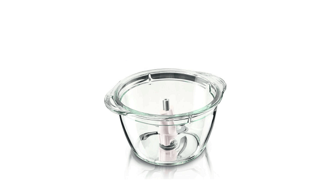 خردکن مدل 1399 مخزنی با حجم مناسب از جنس پشیشه ای دارد که تیغه ی استیل ضدزنگ و تیز دستگاه در آن نصب میشوند. با گذاشتن در یا درواقع همان موتور دستگاه روی ظرف، با فشار دادن قسمت بالایی در که بهعنوان دکمه عمل میکند به چرخش در میآیند.