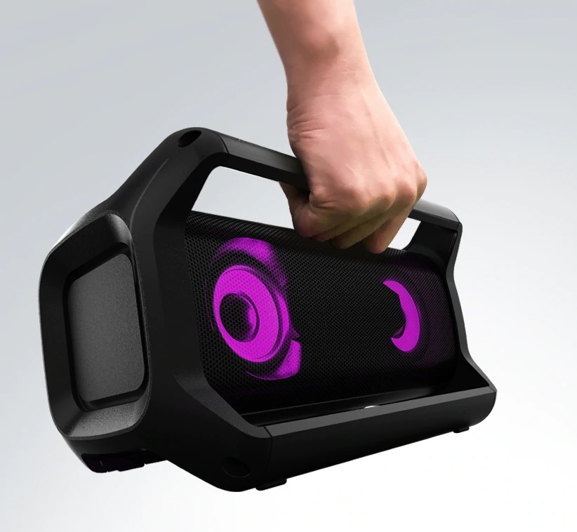 با طراحی بسیار جالب دسته های این سیستم صوتی، هر جایی که دوست داشتید موسیقی مورد علاقه خود را با صدایی بی نظیر پخش کنید. دسته های ای سیستم در بالا و پایین به گونه ای طراحی شده اند که هم قابلیت قرار دادن روی زمین را دارند و هم قابلیت حمل و نقل بهتر را ارائه می دهند.
