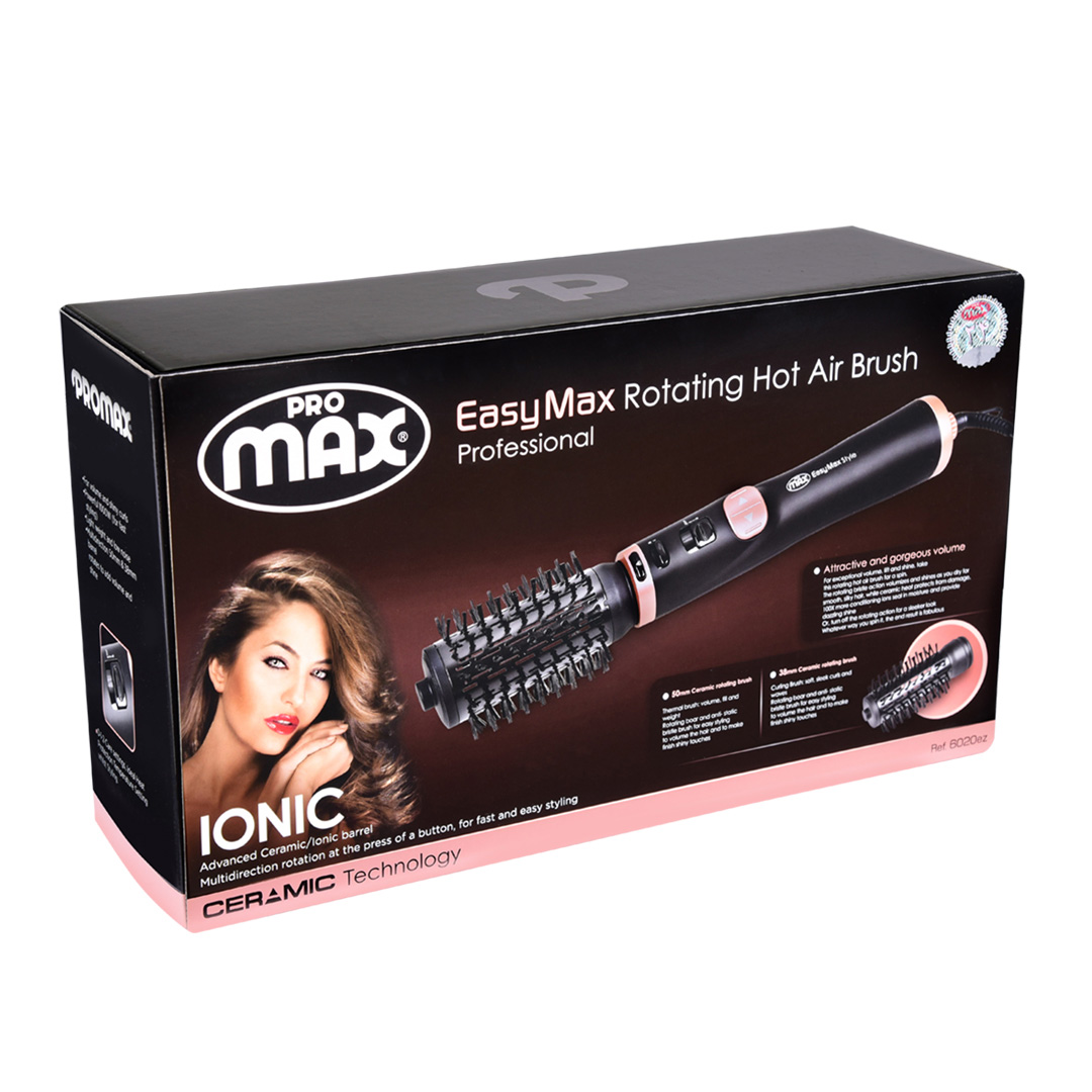 سشوار چرخشی و برس دار پرومکس مدل 6020ez برای براشینگ مو و حالت دادن به آن استفاده میشود .خاصیت آیونیک این دستگاه از وز شدن موها جلوگیری میکند و علاوه بر آن به خشک شدن سریعتر مو و درخشندگی بعد آن نیز کمک شایانی میکند. این دستگاه دارای دو سری به قطر 38 و 50 میلیمتر است که هر کدام دارای کاربرد مخصوص خود هستند.سری 38 میلیمتری که به آن Curling Brush نیز گفته میشود برای ایجاد موج های نرم یا کوچک استفاده میشود و سری 50 میلیمتری که به آن Thermal brush نیز گفته میشود بیشتر برای خشک کردن و حجم دادن به مو استفاده میشود.