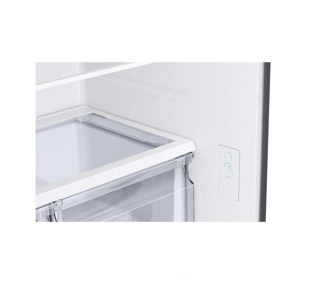 یخچال فرنچ سامسونگ RF49 از یک نمایشگر برخوردار است. این نمایشگر اختیارات بسیار زیادی را در اختیار کاربران قرار میدهد و کارایی یخچال را بالا میبرد. با استفاده از این صفحه نمایش، قادر خواهید بود دمای یخچال و فریزر را به صورت جداگانه اندازهگیری کنید. یخچال و فریزر به دماهای متفاوتی نیاز دارند و نمیتوان از یک دما برای هر دو قسمت استفاده کرد. شما میتوانید دمای یخچال و فریزر را مطابق با دمای محیط و شرایط آب و هوایی منطقه، همچنین دمای مورد نیاز برای سالم ماندن مواد غذایی تنظیم کنید.