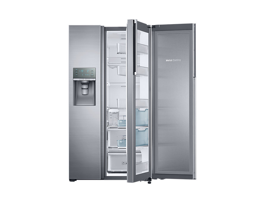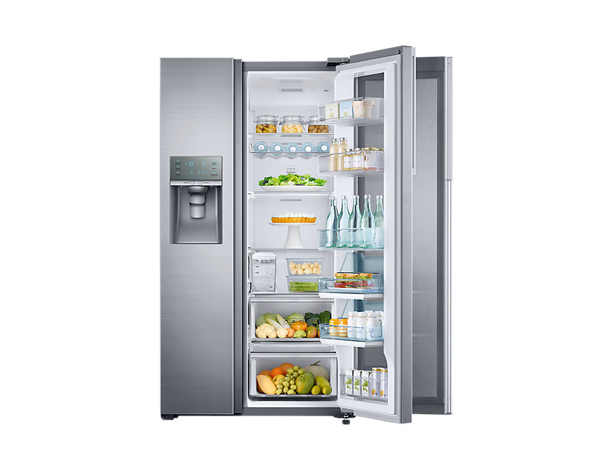 یخچال ساید بای ساید RH57 از سری محصولات سامسونگ است که دارای طراحی فوق العاده ، رنگ آمیزی عالی ، چشم نواز و قیافه ای خوش تراش می باشد و در طراحی درب ، کشو و قفسه ها فناوری هایی به کار برده که علاوه بر زیبایی ، کاربرد عالی نیز به خود گرفته است. طراحی « Food ShowCase » که دو درب بر روی هم قرار گرفته اند و با باز کردن درب اول تنها به بخشی از محفظه ها دسترسی پیدا می کند و می توانید بطری و یا اقلام کوچک را در آن قرار دهید ؛ البته کشوهایی برای کودکان با نام « Kids Zone » در قسمت پایین طراحی شده است که می توانید خوراکی ها و کیک و … را در این قسمت قرار دهید تا مجبور نباشید برای دسترسی کودکان به این قسمت درب را باز کنند و اتلاف انرژی صورت گیرد. توسط طراحی Food ShowCase در یخچال ساید بای ساید RH57 سه قسمت برای شما در دسترس خواهد بود که شما می توانید در این ویترین خوش ساخت لوازم آشپزی ، خانواده و بچه ها را قرار دهید و به راحتی آنها را پیدا کرده و بردارید.
