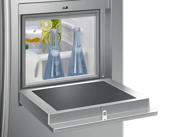 شرکت سامسونگ در این یخچال از دستگیره های جداگانه برای استفاده از آب و یخ این دستگاه استفاده نموده است و همین موضوع باعث شده جذابیت و طراحی خاصی را در این یخچال شاهد باشیم. یعنی شما برای اینکه از یخریز دستگاه استفاده کنید، باید ظرف خود را در قسمت یخ و برای استفاده از آب سردکن دستگاه، لیوان خود را در قسمتی دیگر از یخچال قرار دهید. این گونه طراحی در یخچال باعث می شود در سیستم آب و یخ بیرونی دستگاه هیچ گونه اختلالی به وجود نیاید.