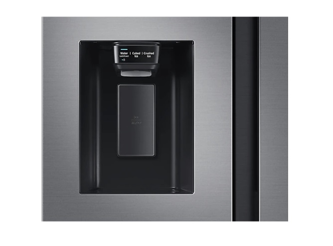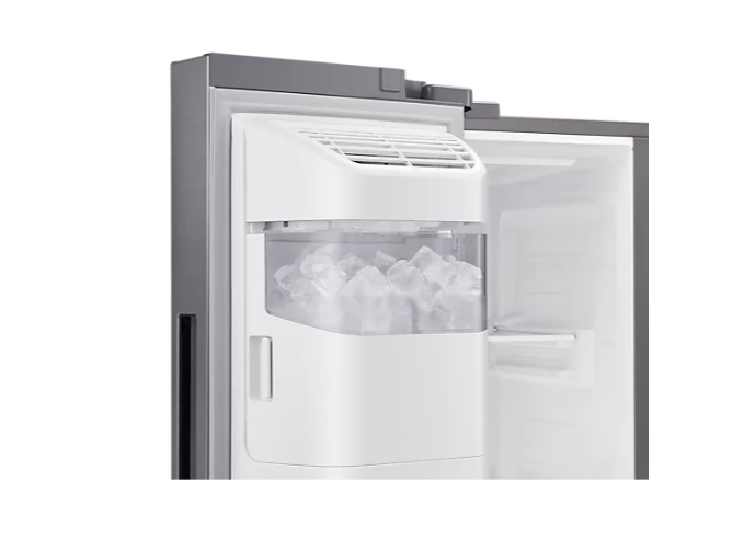 یکی از قابلیت های منحصربفرد این یخچال سامسونگ امکان یخ سازی اتوماتیک می باشد که کمپانی سامسونگ برای جلوگیری از اتلاف فضای داخل فریزر آن را بر روی درب طراحی کرده است. البته فضایی که این مخزن یخ ساز به خود اختصاص داده است می توان گفت نصف فضایی است که مدل های دیگر دارا می باشند به طوری که کاربر می تواند بدون نگرانی از کمبود جا هر نوع اقلام غذایی را در فریزر قرار دهد و همچنین از داشتن یخ های مکعب شکل نهایت استفاده را ببرد.
