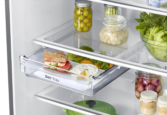 قفسه ی Deli Tray نیز از دیگر ویژگی های یخچال RT62 دارای طراحی ویژه ای است که باعث می شود نهایت استفاده از فضای داخلی یخچال گردد و از هدر رفتن فضا جلوگیری شود. این قفسه محل مناسبی برای نگهداری مواد غذایی است. همچنین این قفسه می تواند مکان مناسبی برای نگه داری ریزخوردنی هایی باشد که هر لحظه امکان دارد مورد نیاز باشند. از قبیل شیرینی های تک پخت و مواد غذایی دیگر. سامسونگ با این کار، هم مکانی اضافی را در اختیار کاربران محصولات خود قرار داده است و هم موجب دسترسی سریع به این نوع مواد غذایی شده است.