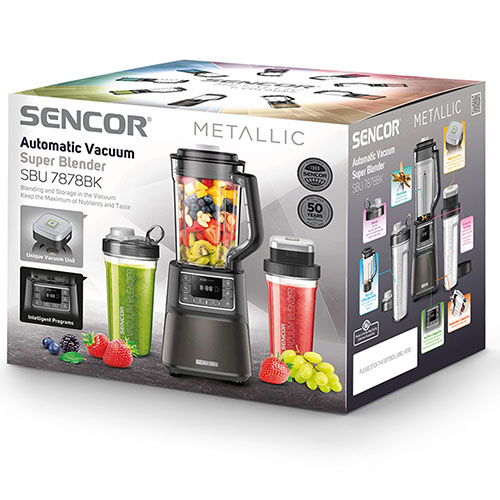 مخلوط کن 1500W سنکور مدل SBU-7878BK ساخت کمپانی سنکور می باشد. این دستگاه قابلیت درست کردن اسموتی و مخلوط کردن مواد را دارد.ظرف مخلوط کن با ظرفیت 1.5 لیتری طراحی شده است، که می توان مقدار زیادی مواد را داخل آن جای داد. دو ظرف مسافرتی با ظرفیت 0.7 لیتر نیز همراه مخلوط کن می باشد. بدنه مخلوط کن از پلاستک مرغوبی ساخته شده است؛ که دوام عمر زیادی را برای شما مهیا می کند. پایه های ضد لغزش، تیغه استیل، صفحه نمایش، سوئیچ ایمنی و … از ویژگی های جذاب مخلوط کن 7878 سنکور است.