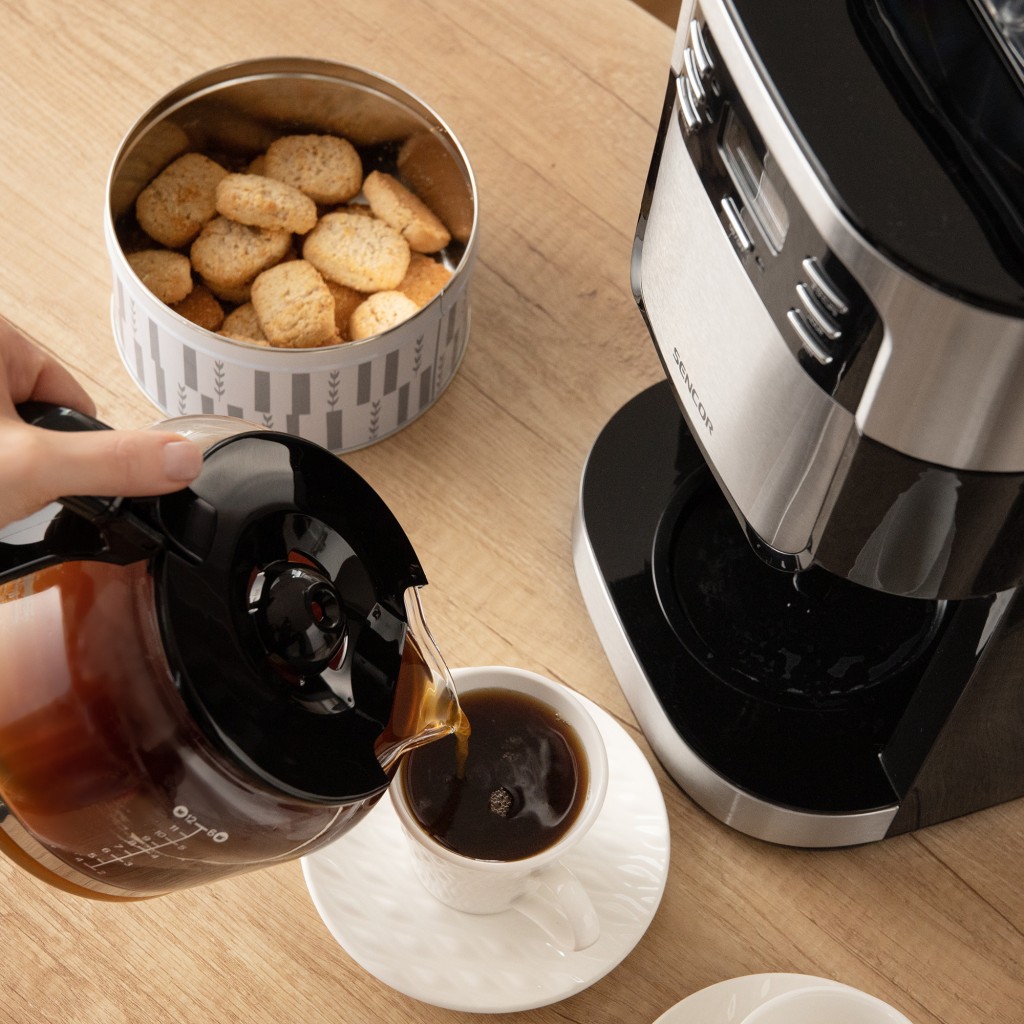 قسمت فیلتر این قهوه ساز سنکور به صورت لولایی باز می شود و شما به راحتی می توانید پودر قهوه تهیه شده را در ان بریزید و یا حتی می توانید فیلتر را به راحتی در اورده و پس از استفاده تمیز کنید.این دستگاه کاملاً ایده آل برای مهمانی ها بوده زیرا در هر بار استفاده از آن می توان تا 12 فنجان قهوه را آماده کرد و از مهمان های خود با قهوه ای با کیفیت پذیرایی کرد.