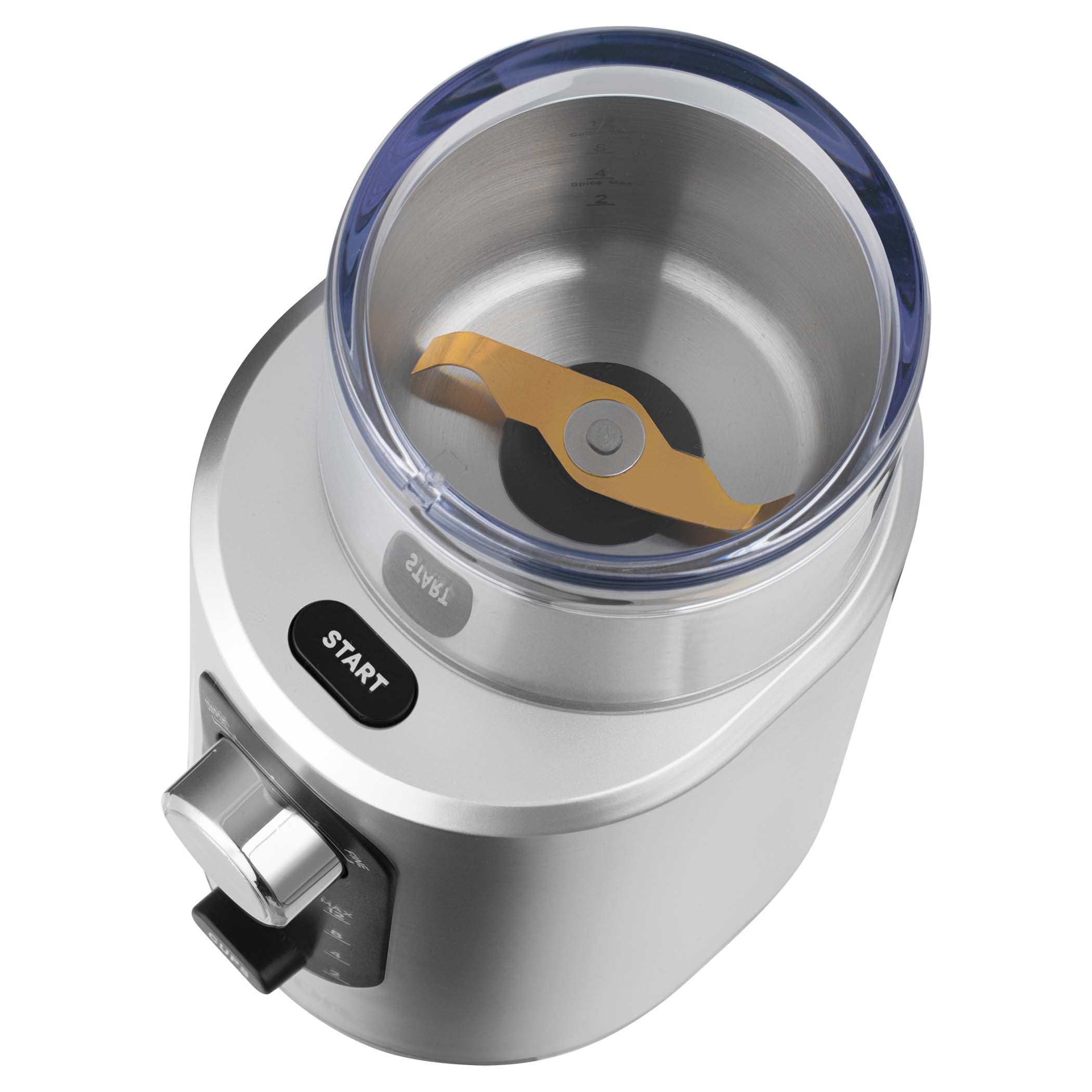 روی بدنه ی این دستگاه دکمه های با روکش کروم تعبیه شده است که می توانید برای روشن کردن دستگاه و همچنین برای تنظیم میزان ریز و درشتی دانه های قهوه از آن استفاده نمایید. به علاوه وجود محفظه ای داخل بدنه این دستگاه برای قرار گرفتن سیم برق ۶۵ سانتی متری آن، باعث می شود در مواقع عدم استفاده، دستگاه جلوه زیبایی داشته باشد و فضای کمتری اشغال گردد.