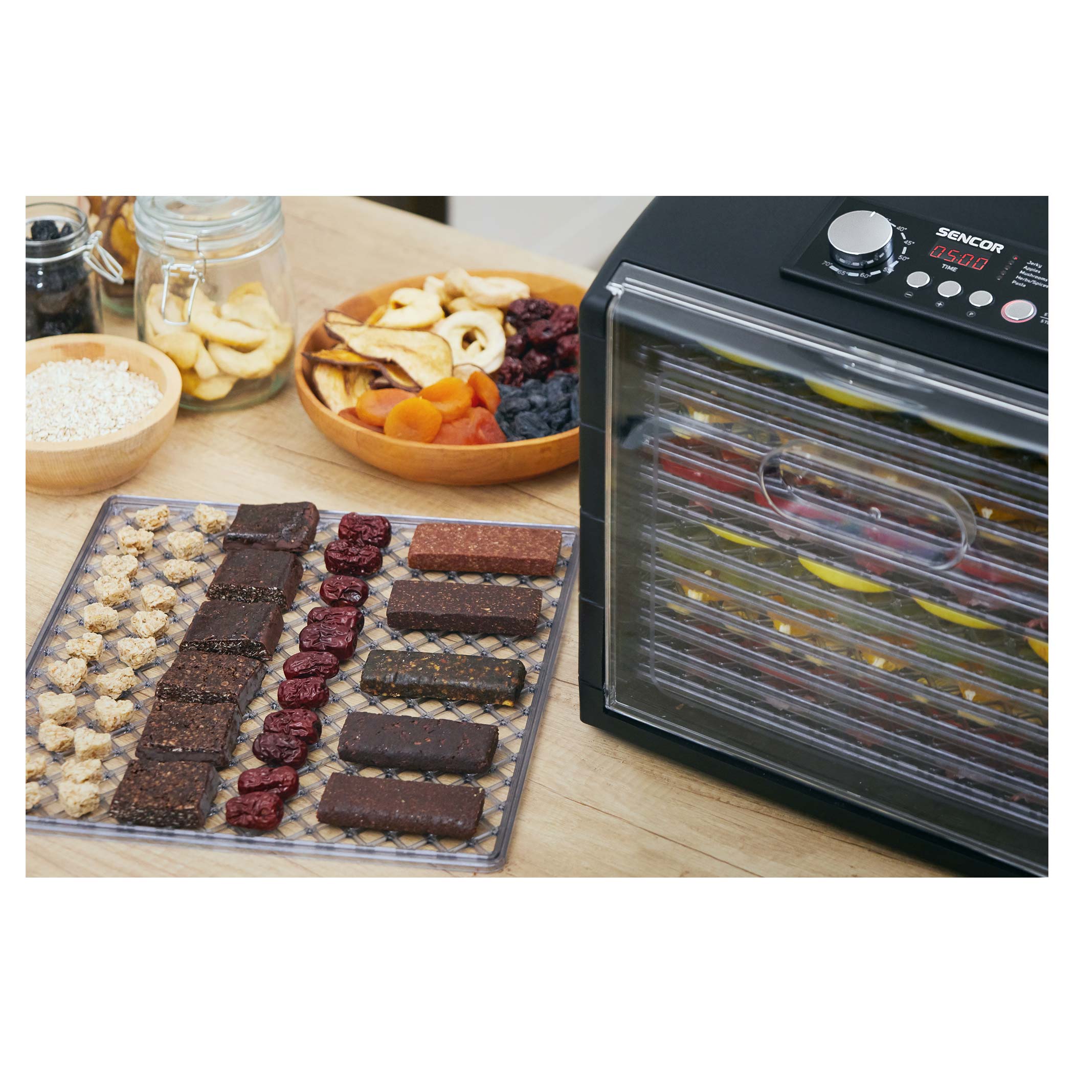 میوه خشک کن سنکور 6600 مجهز به حداکثر 12 صفحه خشککن روی هم قرار گرفته است که میتواند بهطور همزمان 6 کیلوگرم مواد اولیه را در خود جای دهد. با استفاده از این میوه خشککن , خشک کردن غذا آسان است، قطعهقطعه شده، آنها را کنار هم در یک سینی چیده و در خشککن قرار دهید. دما را میتوان از 35 تا 70 درجه سانتیگراد تنظیم کرد. همچنین میتوانید زمانی را تنظیم کنید که خشککن بهطور خودکار خاموش شود.