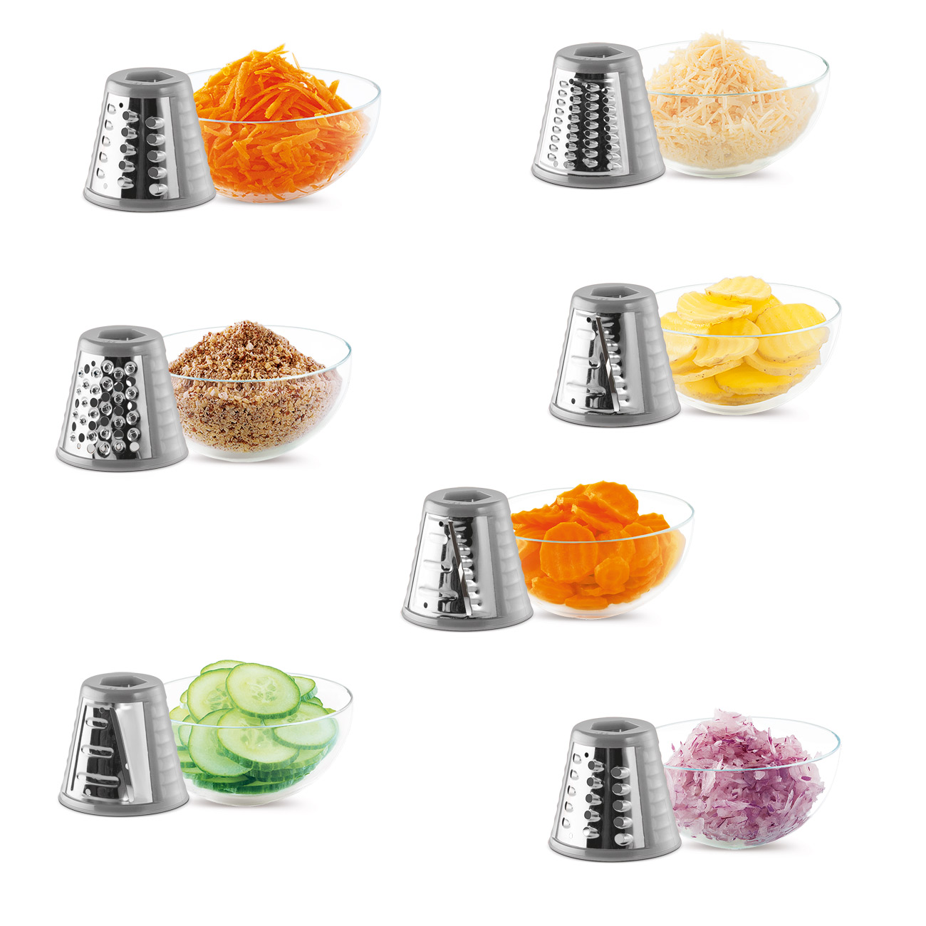 این سالاد ساز سنکور، مجهز به 5 تیغه مخروطی شکل است. تیغه خرد کردن در اندازه ریز، تیغه خرد کردن در اندازه درشت، تیغه خلالی کردن در اندازه ریز، تیغه خلالی کردن در اندازه درشت و البته تیغه ورقه کردن. جنس تیغه ها از استیل ضد زنگ بوده و در مقابل رطوبت و البته ضربه بسیار مقاومند.