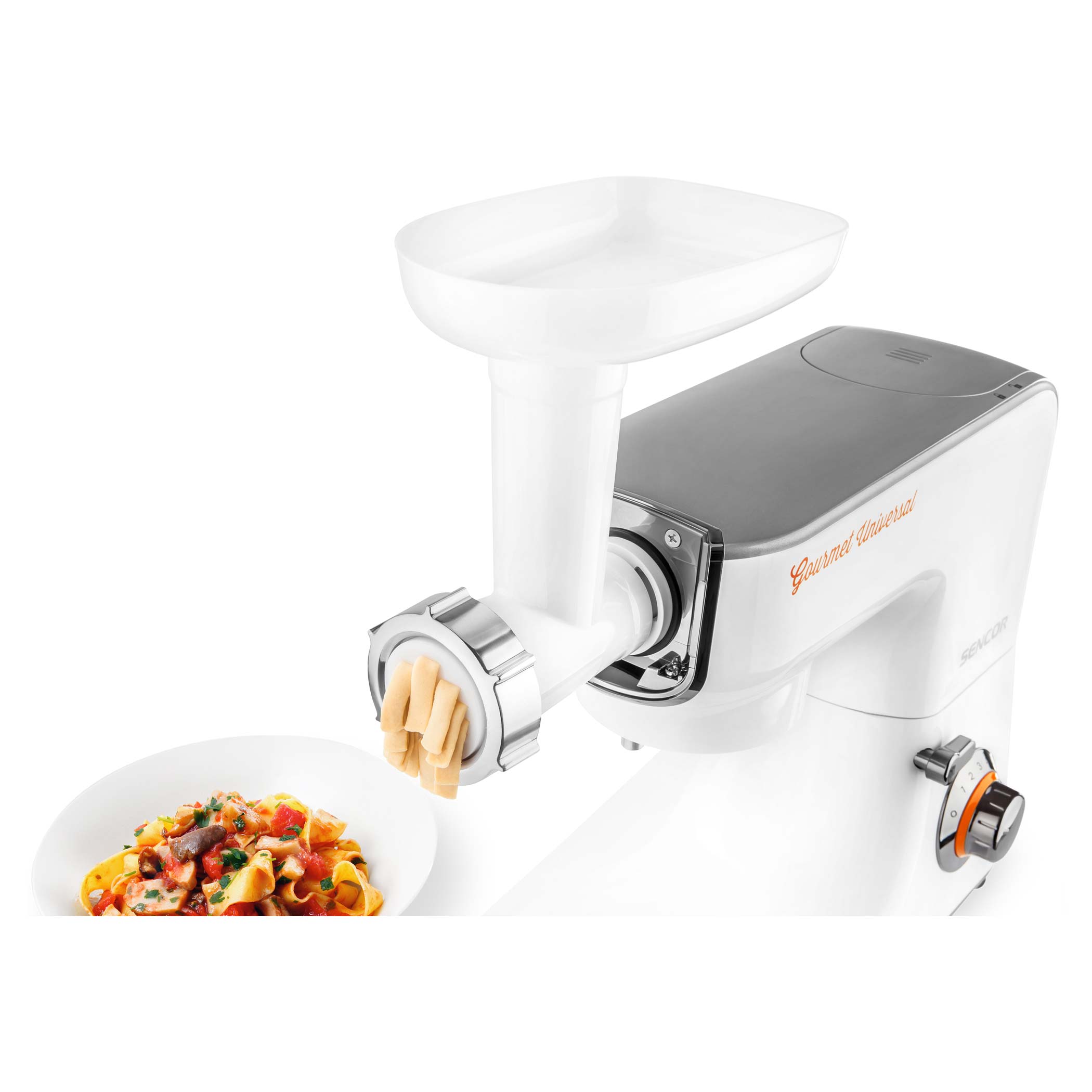 این غذاساز شامل 10 سرعت قابل تنظیم می باشد تا از این طریق کاربر بتواند مناسب ترین سرعت را برای مواد غذایی اش انتخاب نماید. از طریق سری مخلوط کن می توانید انواع غذا، میوه و سبزی را خرد کنید؛ علاوه بر این با استفاده از چرخ گوشت انواع گوشت را چرخ کرده و از قدرت و سرعت عمل آن لذت ببرید.