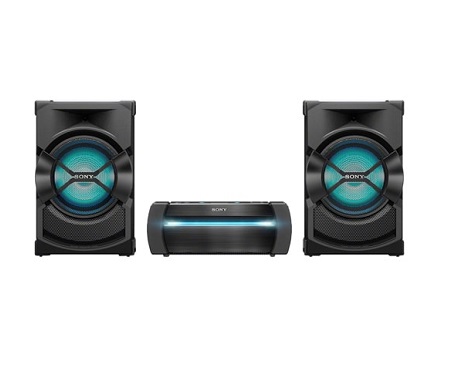 سیستم صدای سونی SHAKE-X10 از دو باند بزرگ همراه با یک پخش کنندهی اصلی تشکیل شده است. هر یک از اسپیکرهای بزرگ همراه با این محصول دارای ابعاد 48 در 38 در 31 سانتیمتری هستند و همچنین با داشتن وزن 5.4 کیلوگرمی، امکان جابهجایی و حمل را برای کاربر فراهم میکنند. ابعاد پخش کنندهی اصلی هم مناسب و برابر با 45 در 32 در 16 سانتیمتر با وزن 2.6 کیلوگرمی است. ابعاد مناسب سیستم صوتی سونی SHAKE-X10 از آن مدلی مناسب برای قرار دادن در سالن و هر قسمت از محیط ساخته است. اسپیکرهای این سیستم صوتی دارای ظاهر زیبایی هستند و بی شک ظاهر محیط خانه را هم تحت تاثیر قرار می دهند و جلوه ای مدرن به آن خواهند بخشید. این سیستم صوتی به مهمانی هایتان هیجان فوق العادهای میبخشد. قدرت بیشتر، صدای بیشتر با سونی شیک X10! فناوری Sound Pressure Horn سونی از طراحی منحصر به فرد مسیر صدا برخوردار است که فشار صوتی اصوات را افزایش میدهد. این ویژگی فشار صوتی را تقویت میکند و سبب میشود ساخت صدای بم قویتر از همیشه گردد و احساس عمیق تر و قوی تری را تجربه کنید. در قسمت میانی بلندگوها، LEDهای کوچک برای نورپردازی محیط به چشم میخورند. وجود LED های ریز برای نورپردازی در ایجاد هیجان مهمانی نقش زیادی دارد و شور و هیجان زیادی خلق میکند. از آنجا که این سه یونیت به کمک کابل به یکدیگر وصل میشوند، برای ایجاد نمای زیبا بهتر است تمامی آنها را در کنار هم قرار دهید. با قدرت بالای صدای سونی شیک X10؛ کلاب را به خانه بیاروید! همگام سازی موسیقی و رقص نور سونی شیک X10 مهمانی هایتان را همچون یک کلاب حرفهای نورانی میکند. با بهره گیری از افکتهای DJ ریتم مورد علاقه خود را به مهمانی تان ببخشید و دوستانتان را بیش از پیش به هیجان دعوت کنید.