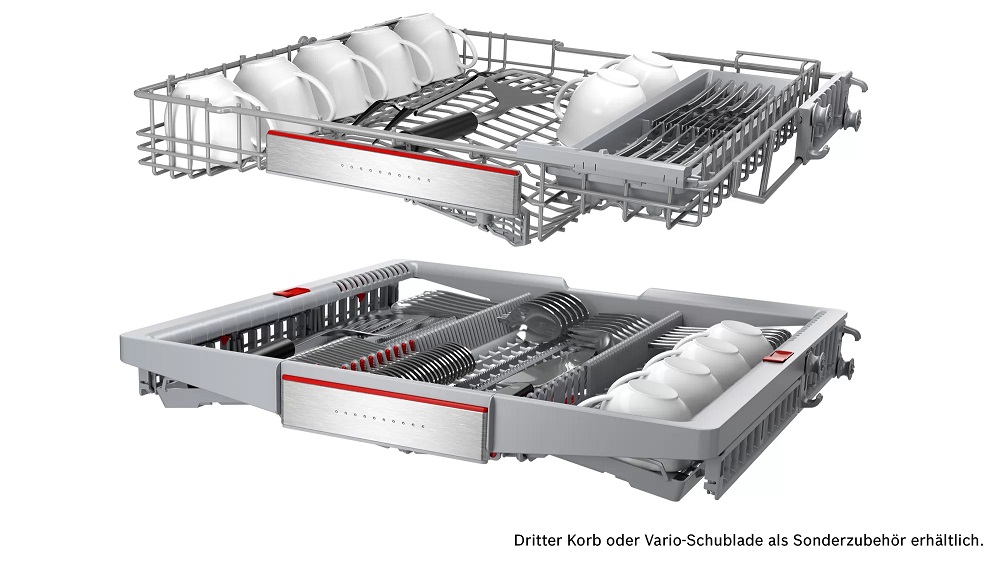 به لطف استفاده از سیستم قفسه سه گانه، ارتفاع بالاترین قسمت قفسه تا 5 سانتیمتر قابل تغییر است و حتی اگر پر هم باشد باز هم می توانید از این ویژگی استفاده نمایید. یعنی با توجه به گزینه های قابل تنظیم بیشتر، همچنان از حداکثر انعطاف پذیری برخوردار است. شرکت بوش از این قابلیت ماشینهای ظرفشویی خود با عنوان 3 روش rackmatic یاد می کند و با افزودن این کارایی به آنها، نشان داد که تسلط وافری بر ساخت محصولات خود دارد.