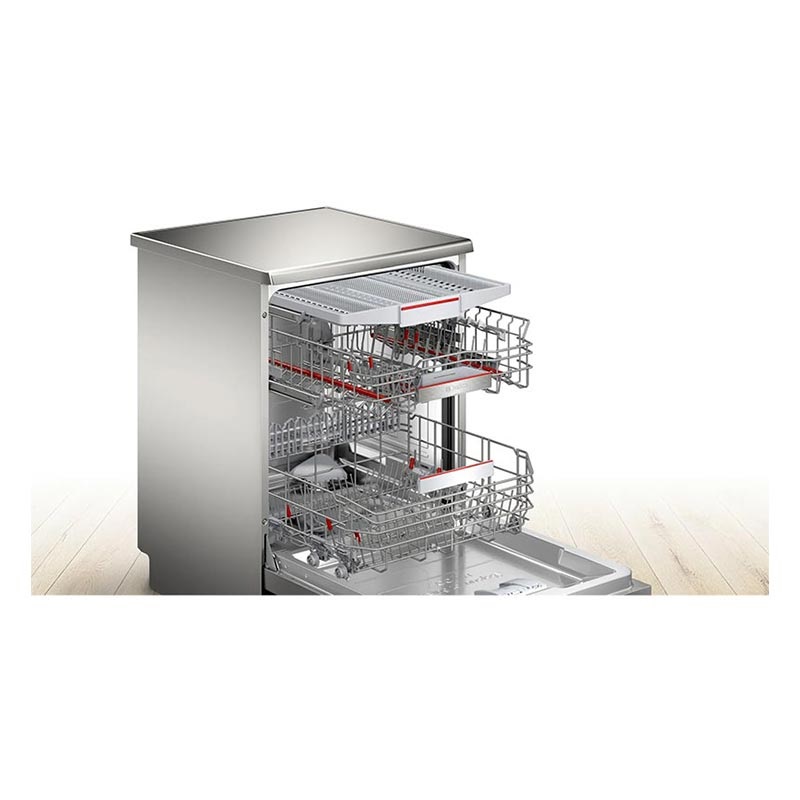 طبقه ها را می توان در جهت عمودی به اندازه ی 5 سانتیمتر جابجا کرد. بنابراین هر اندازه ظرف در این ماشین ظرفشویی جای می گیرد.کمپانی بوش در وب سایت خود بیشتر به ظرفیت 13 نفره اشاره می کند اما در اصل ظرفیتی برابر با 14 نفره را می توان برای ماشین ظرفشویی سری 6 در نظر گرفت.