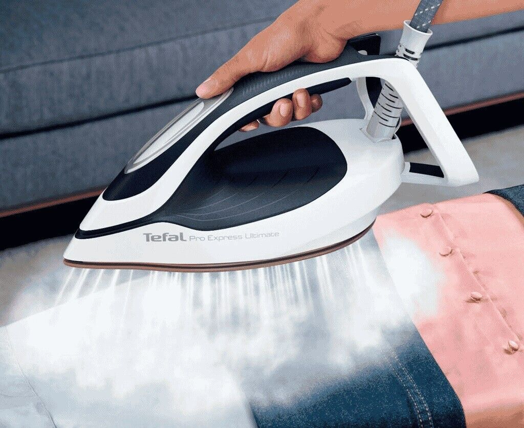 اتو مخزن دار تفال مدل GV9712 از جمله اتوهای با کیفیت بالای ساخت و مخزن داراست. این محصول از دو قسمت اتو و مخزنی برابر با 1.2 لیتر تشکیل شده که این میزان گنجایش، نیاز به پرکردن مکرر منبع را از بین می برد. قدرت موتور این دستگاه برابر با 3000 وات است که به سرعت باعث داغ شدن کف اتو شده و آماده استفاده می باشد.