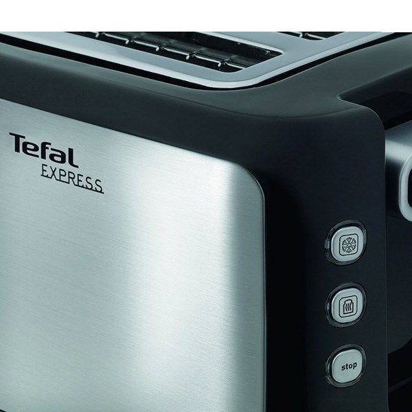 توستر تفال مدل TT3650 به منظور حفظ زیبایی ظاهری، دکمه ها را در قسمت راست دستگاه و به رنگ نقره ای در پس زمینه مشکی تعبیه کرده است. این کار باعث افزایش زیبایی دستگاه شده و دید کاربر را برای کار کردن دستگاه افزایش می دهد. اولین کلید یا دکمه در قسمت بالا که علامت برفک دارد، مربوط به عملیات یخ زدایی نان می باشد. با فشردن آن می توانید نان های فریزری را در عرض یک دقیقه گرم کنید و سپس آن را برشته کنید. دکمه بعدی مربوط به گرم کردن مجدد نان می باشد. این دکمه زمانی کاربردی می شود که نان را قبلا برشته کرده اید و بعد از مدتی سرد شده است. با فشردن این دکمه نان توست شده دوباره گرم خواهد شد.