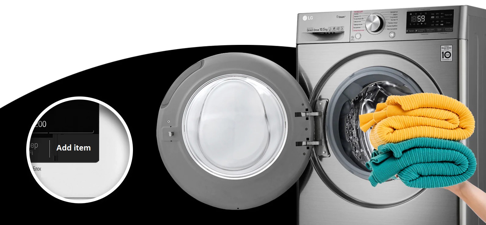 شاید برای شما هم اتفاق افتاده باشد که پس از روشن نمودن ماشین لباسشویی، به یاد بیاورید که یک تکه لباس کوچک یا بزرگ را فراموش کرده اید و باید آن را با دست شسته و یا تا نوبت بعدی صبر نمائید. اما اخیرا در مدل های جدید لباسشویی یک آیتم به منظور امکان اضافه کردن لباس (Add Item) به ماشین لباسشویی در حین شستشو اضافه گردیده است که لباسشویی ال جی نیز از این تکنولوژی بهره گرفته است. در این تکنولوژی می توان با زدن یک دکمه (Pause) شستشو را متوقف کرده و بعد از اضافه نمودن لباس، دوباره روشن نموده و شستشو را از سر بگیرید.