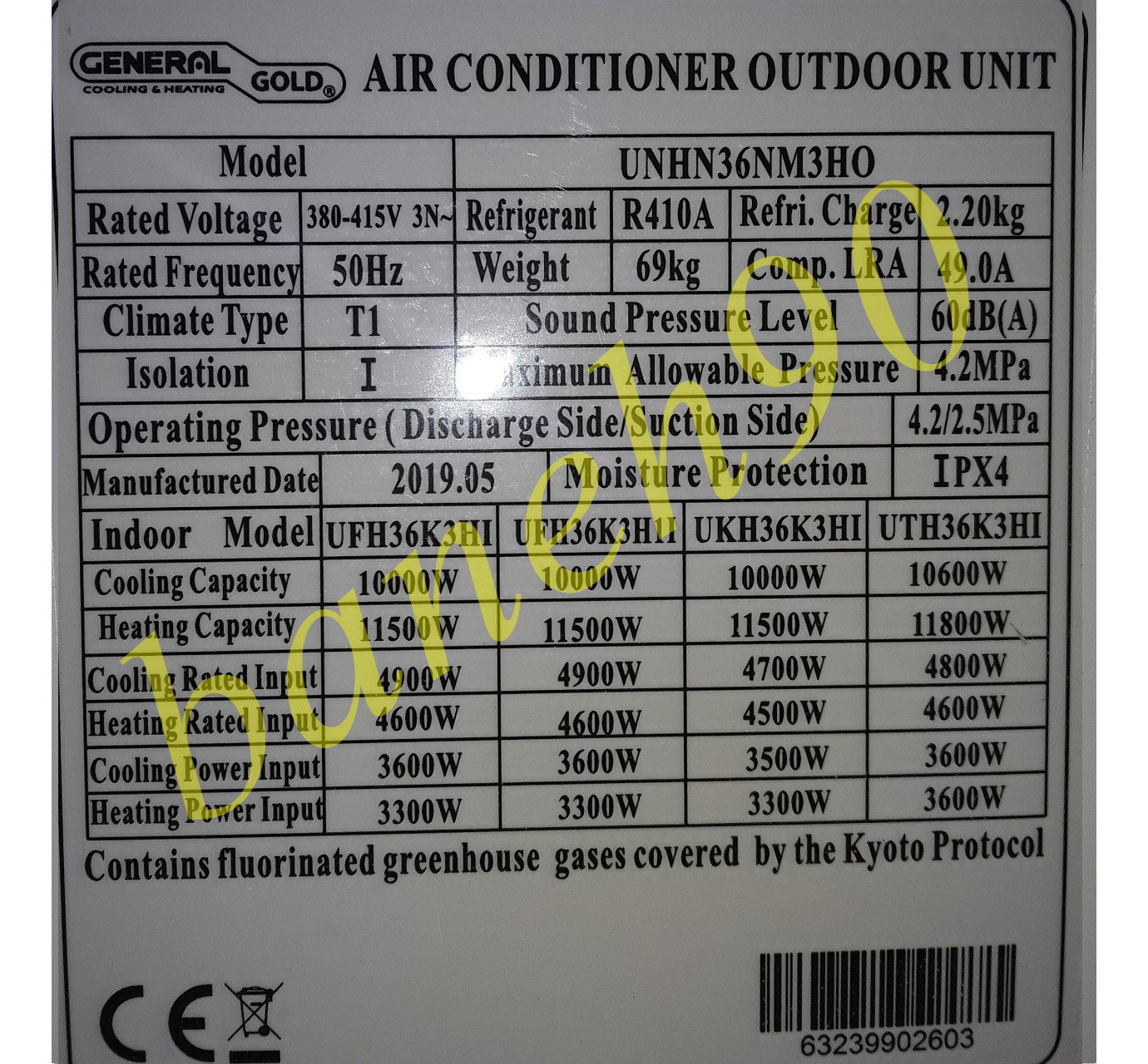 داکت اسپلیت 36000 جنرال گلد مناسب برای مناطق معتدل تا نیمه گرم (موتور T1) است. ظرفیت سرمایشی و گرمایشی اسمی این داکت اسپلیت 36000 بی تی یو بر ساعت میباشد. گاز مبرد این اسپلیت R410 است. اسپلیت کانالی 36000 جنرال گلد برای فضاهای مسکونی با متراژ حداکثر 90 متر مربع، فضاهای اداری با متراژ حداکثر 70 متر مربع و فضاهای فروشگاهی با متراژ حداکثر 50 متر مربع مناسب میباشد. از ویژگی داکت اسپلیت 36000 سرد و گرم جنرال گلد قابلیت استفاده همزمان برای چندین اتاق، فیلترهای هوا با قابیت شستشو و کنترل دمای محیط توسط سنسور است.