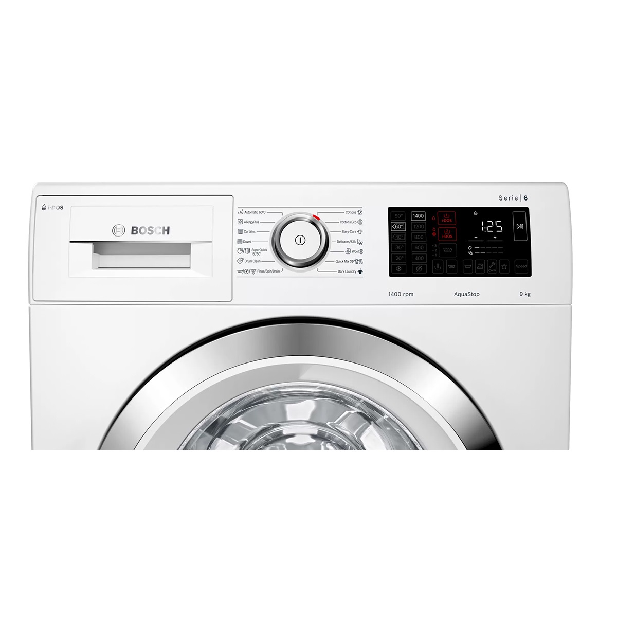ماشین لباسشویی بوش مدل WAT28682ME با ظرفیت 9 کیلوگرم مناسب خانواده های پر جمعیت می باشد که در هر بار شستشو حجم زیادی از لباس را در خود جای می دهد. صدای کم موتور اکو سایلنس درایو این دستگاه کمترین مزاحمت را برای شما ایجاد نخواهد کرد. این لباسشویی دارای رده انرژی A بوده که جزء کم مصرف ترین لباسشویی های بازار می باشد و موجب ۳۰% مصرف انرژی کمتری می شود. سیستم لکه بری این لباسشویی کمک میکند تا این دستگاه قادر باشد ۱۶ نوع لکهای که پاک کردن بسیار سختی دارند (شامل لکههای شکلات، چای و …) به خوبی از بین ببرد. این ماشین لباسشویی به صورت اتوماتیک دمای آب، نوع حرکت دیگ داخلی و زمان خیس خوردن لباس را بر اساس لکههای روی لباس و قبل از شروع برنامه انتخابی شستشو تعیین میکند. سیستم Aqua Stop در صورت نشت آب در مسیر عبور، بلافاصله آب را قطع می کند.
